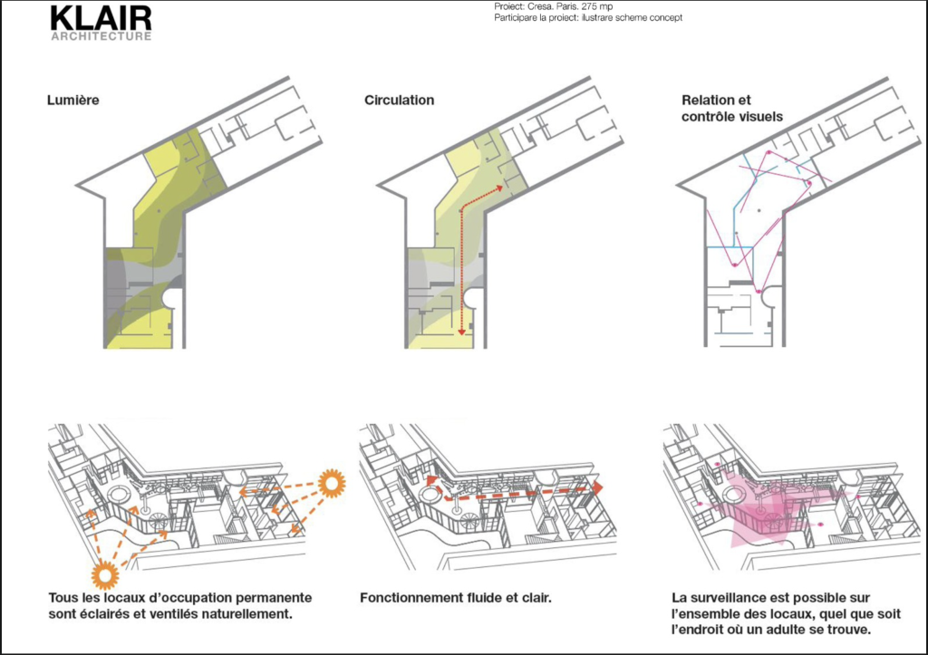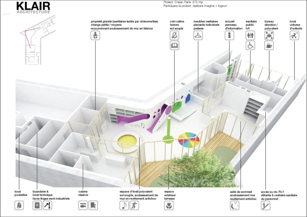 Arhitectura dedicată educației timpurii este, probabil, una dintre cele mai delicate discipline ale profesiei. Nu este vorba doar despre a construi un adăpost, ci despre a crea un micro-univers capabil să hrănească curiozitatea primilor pași. Participarea la acest concurs internațional pentru amenajarea unei creșe în inima Parisului a reprezentat o provocare de a echilibra rigoarea normativă franceză cu puritatea unui spațiu ludic.